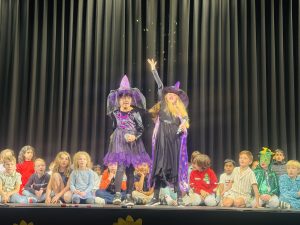 Ein besonderer Höhepunkt war das Theaterstück „Das Lied vom ersten Schultag“, das von den Klassen 2a, 2b und 2c aufwändig vorbereitet und lebhaft aufgeführt wurde. Nahezu 60 Kinder wirkten mit – sie spielten, sangen und sprachen mit viel Begeisterung und machten in dem Stück deutlich, wie sinnvoll und nützlich das Lernen in der Schule ist: Wer rechnen kann, kann besser einschätzen, für wie viel Geld man etwas bekommt.